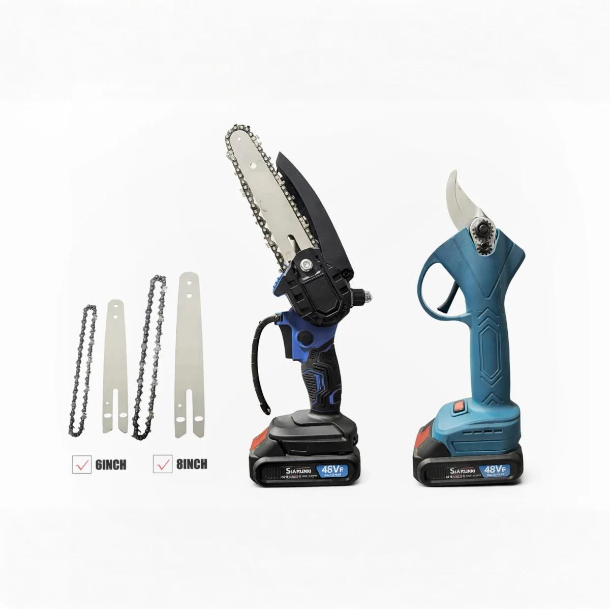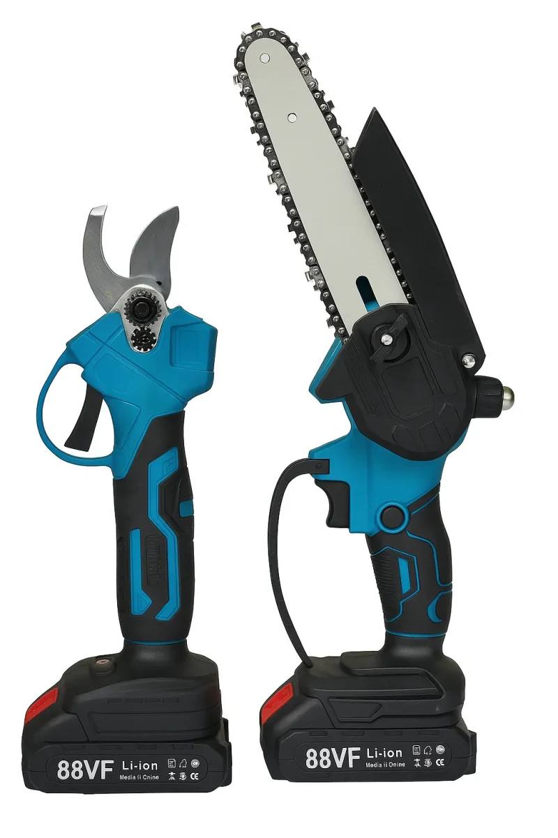 Kit Potatura Elettrico 48V con Motosega 6″ e Forbice 30mm – Doppia Batteria, Asta Telescopica e Valigetta Completa