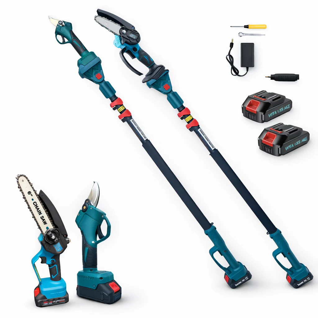 Kit Potatura Motosega 6″ con Oleatore+ Cesoia a Batteria con Asta Telescopica