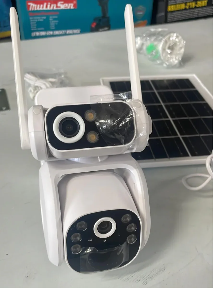 Telecamera di Sicurezza Solare Wi-Fi a Doppia Visione – 2 Obiettivi, Sensore di Movimento, App V380, IP66