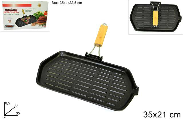 BISTECCHIERA IN GHISA CM. 35X21 CON MANICO IN LEGNO