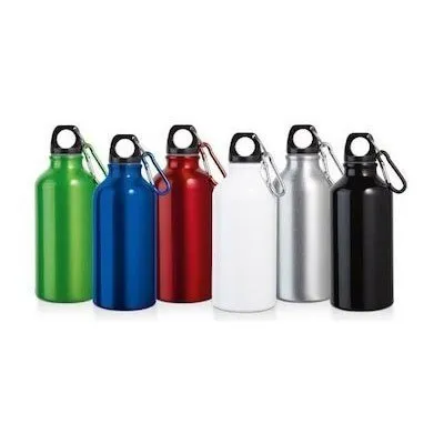Borraccia in alluminio, leggerissima, esterno in alluminio verniciato, interno alluminio non verniciato, tappo dotato di moschettone.Capacità 500 ml