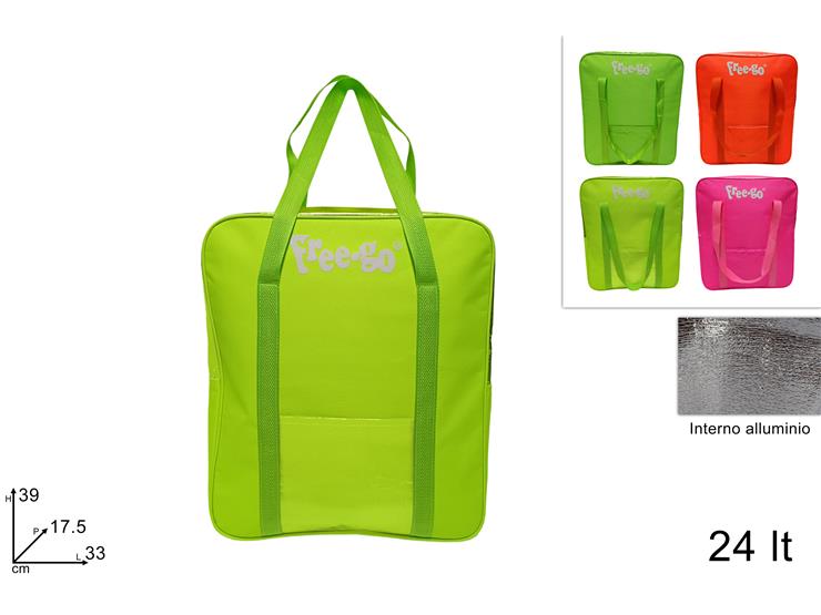 BORSA TERMICA 2 MANICI TINTA UNITA FLUO 24LT CM. 33X17,5H39, 4 COLORI ASSORTITI