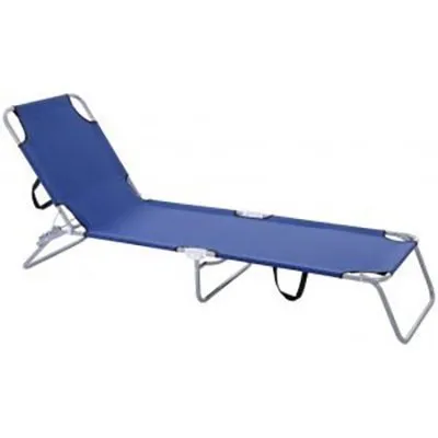 Brandina chiudibile con tre gambe, struttura in ferro, telo in poliestere 600D, schienale reclinabile a più posizioni. Maniglia per il trasporto.