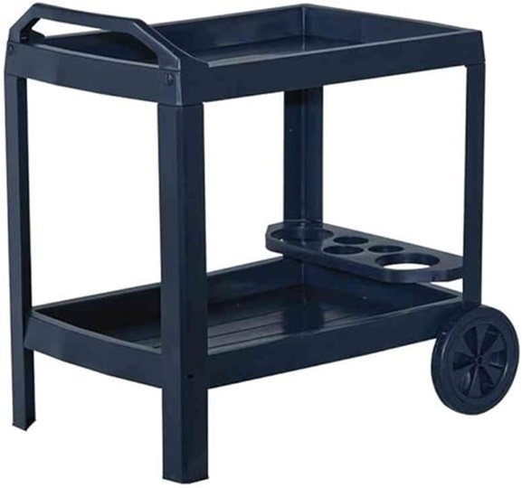 CARRELLO BAR RESINA ROBUSTO CON DUE RUOTE, MODELLO ASTRO. MUNITO DI PORTABOTIGLIE, DUE RIPIANI. ATTENZIONE COLORE BLU