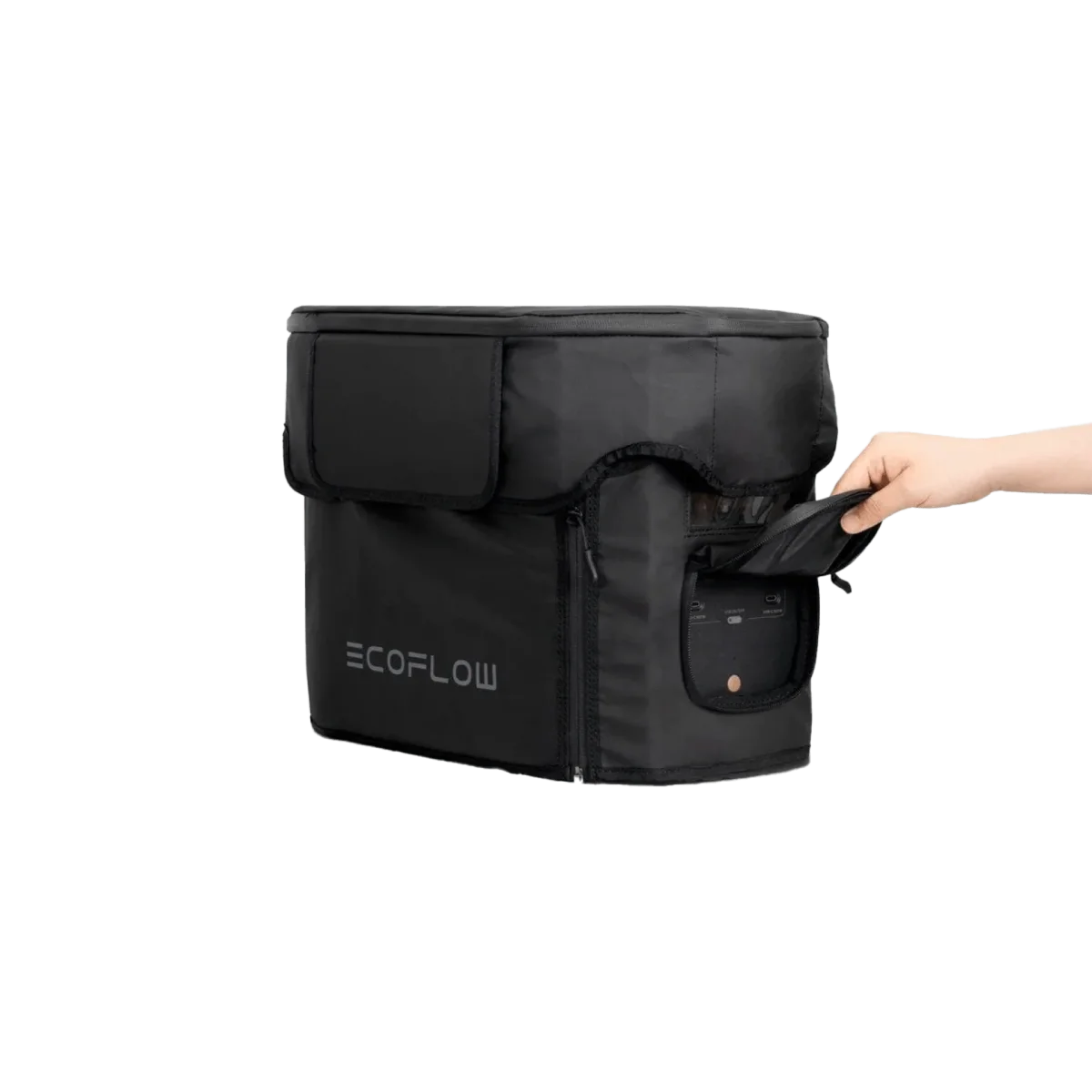 La copertura per EcoFlow DELTA Max protegge il dispositivo da acqua, detriti ed eventuali danni durante gli spostamenti, senza limitarne la facilità di utilizzo.