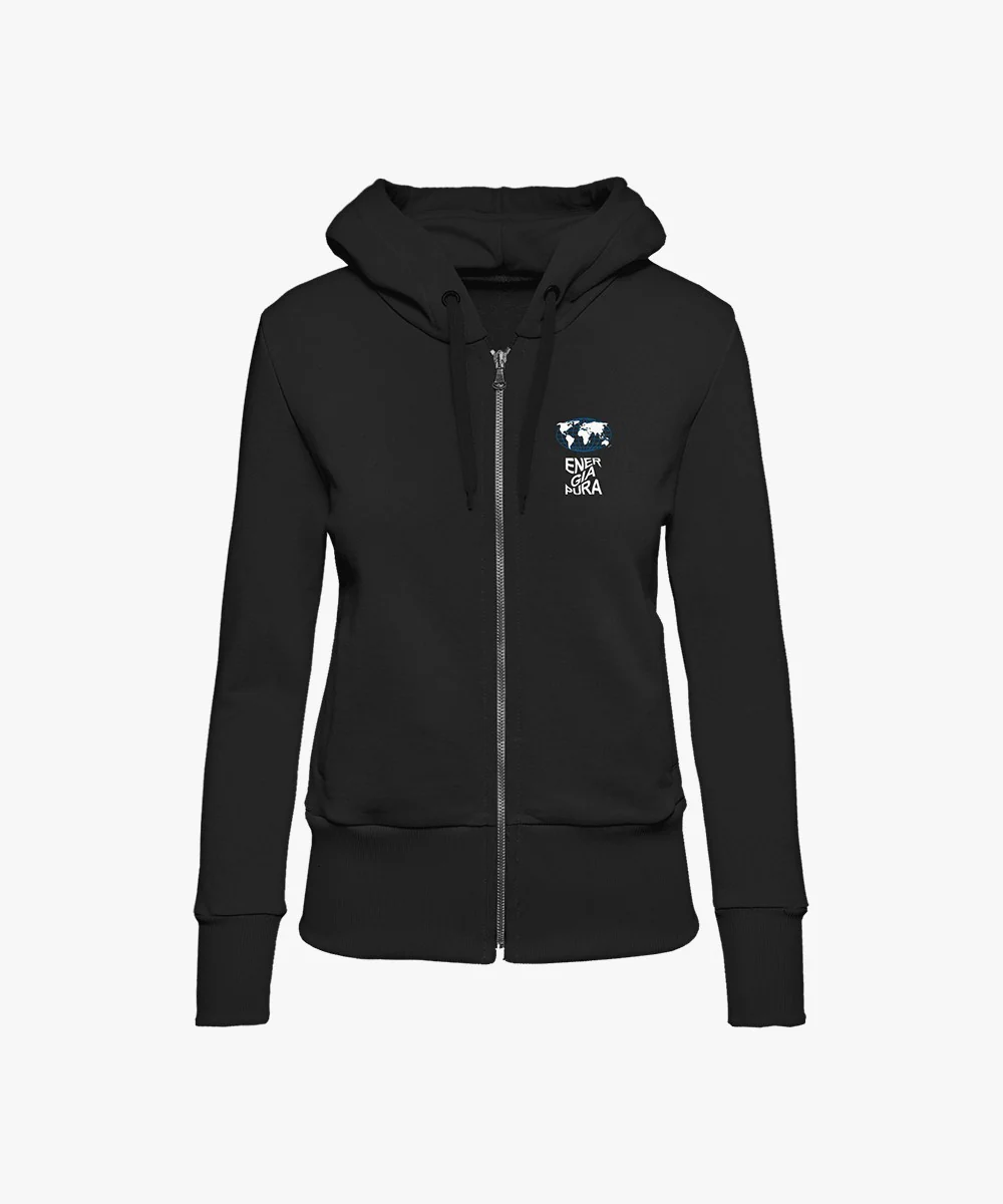 Felpa con cappuccio, 75% cotone 25% poliestere, 300 gr/m2 , tasche a filetto, cappuccio doppiato, zip in metallo.