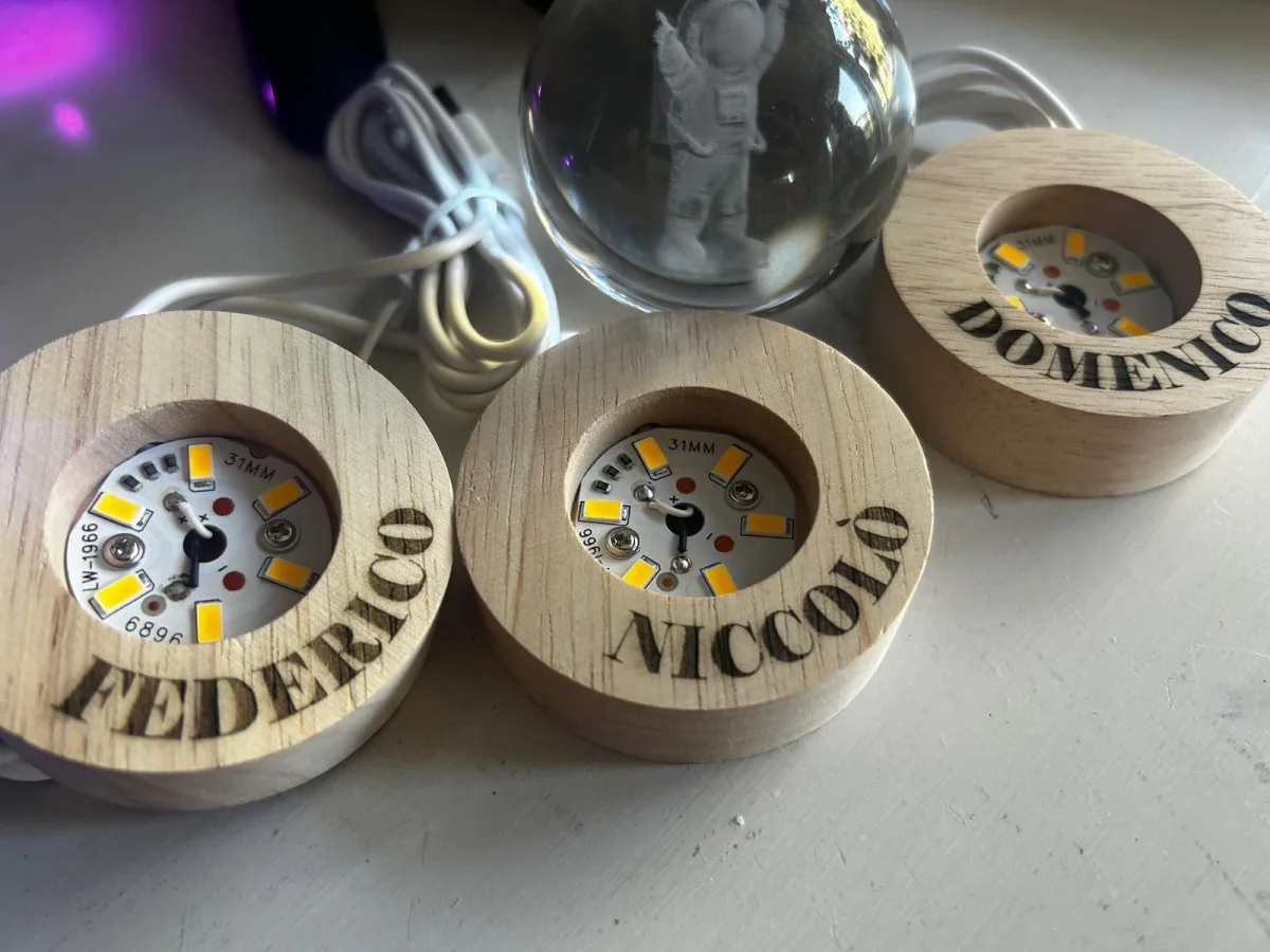 - 1 x Base luminosa in legno personalizzabile