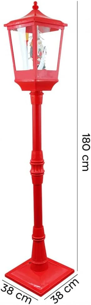 Porta la magia del Natale nelle tue decorazioni con questo splendido Lampione di Natale rosso alto 180 cm. Realizzato in plastica e ABS, all’interno della lanterna troverai una scena festiva con Babbo Natale e neve in movimento, che crea un incantevole effetto visivo una volta attivato. Il lampione emette anche musica natalizia e si illumina con mini luci scintillanti, trasformando qualsiasi ambiente in un’atmosfera calda e suggestiva.