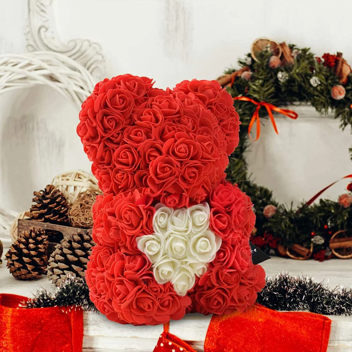 - Realizzato con materiali durevoli, l’orsetto di rose è pensato per mantenere la sua bellezza nel tempo, rappresentando un regalo sentimentale e duraturo.