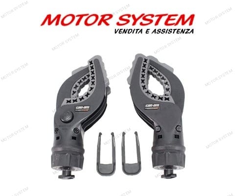 Can Am offre una linea di accessori dedicati al trasporto delle proprie attrezzature: facilitano il trasporto delle attrezzature combinando i supporti Gear Grips con il sistema LinQ. Questi supporti flessibili e robusti proteggono le attrezzature e si adattano ad attrezzi di diametro compreso tra 2,5 e 10 cm. Sistema robusto per il trasporto di archi, canne da pesca, rastrelli, utensili agricoli e altro. Il pulsante di sgancio, che apre rapidamente il morsetto, permette di accedere in modo facile e veloce all’attrezzatura. La base robusta è costruita per le avventure più dure. Questo accessorio si installa facilmente, senza alcuna modifica al veicolo, tramite il sistema di aggancio rapido LinQ. Altrettanto facilmente è possibile rimuoverlo. I supporti sono orientabili a 360°. Il kit comprende una coppia di supporti.